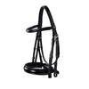 Briglia da dressage realizzata in morbido cuoio italiano di alta qualità con fibbie in acciaio inox che conferiscono sicurezza, stabilità e resistenza nel tempo.