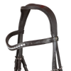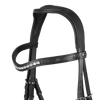Realizzata in cuoio morbido e di altissima qualità, questa briglia è Anatomica, cioè studiata per meglio adattarsi alla forma della testa del cavallo, agendo su punti non dolorosi, aumentandone il confort. La nasiera ed il sopratesta sono imbottiti e soffici, quest'ultimo ha una maggiore imbottitura al centro. Il frontalino è abbellito da una striscia di strass brillanti trasparenti.