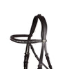 Briglia all'inglese realizzata in cuoio super morbido di ottima qualità. Ha imbottitura su nasiera e sopratesta. Il frontalino è decorato con borchiette argentate. Disponibile nei colori nero e marrone, non è fornita di redini. Puoi acquistare le redini più adatte a te, come le seguenti.