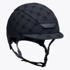 La calotta esterna del casco per equitazione è realizzata in ABS, materiale resistente e leggero ed è ricoperta da jersey resistente e facilmente lavabile. Il cinturino sottogola in ecopelle è ipoallergenico e previene irritazioni. L'imbottitura interna è 100% lana Merino, comoda e traspirante, dalle proprietà antibatteriche e di termoregolazione, mentre la calotta interna è realizzata in polistirolo espanso e fornisce tre livelli di densità, per la massima protezione. Grazie al sistema di regolazione Fit-System il casco si adatta perfettamente alla testa del fantino, garantendo il massimo comfort. Il casco è realizzato in collaborazione con Kask equestrian, azienda all'avanguardia nella realizzazione di caschi in tutti i settori di utilizzo.