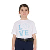 Pensata per le piccole amanti dell’equitazione, la maglietta è arricchita da una stampa in azzurro raffigurante il muso stilizzato di un cavallo e la scritta LOVE, che aggiungono un tocco dolce e distintivo al look.