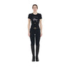 T-shirt donna slim fit in cotone a mezza manica impreziosita da una composizione di strass, con scritta "jumping" e logo Equestro.