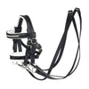 Proprio come una vera briglia da dressage, ha un frontalino di cristallo alla moda e una capezzina nera lucida con morbida imbottitura in pelle bianca. Tutti i dettagli precisi sono al loro posto, persino il doppio morso, con un Weymouth, un Bradoon e doppie redini.
