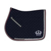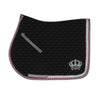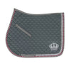 Sottosella da salto molto elegante e particolare. E' imbottito e trapuntato, ha il bordo grigio con cordina bordeaux e bianca, e sul lato sinistro ha una corona ricamata.