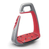 Migliore capacità di assorbimento degli urti. Riduce la tensione di ciascuna staffa di due terzi e allevia la pressione sulle articolazioni del cavaliere e sulla schiena del cavallo, grazie alla nuova geometria del ramo. 3 volte più ammortizzazione rispetto ad una staffa tradizionale.