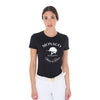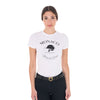 T-shirt donna slim fit in cotone con stampa e applicazioni di strass, design di tendenza e adatta per qualsiasi occasione.