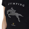 T-shirt donna slim fit in cotone a mezza manica impreziosita da una composizione di strass, con scritta "jumping" e logo Equestro.